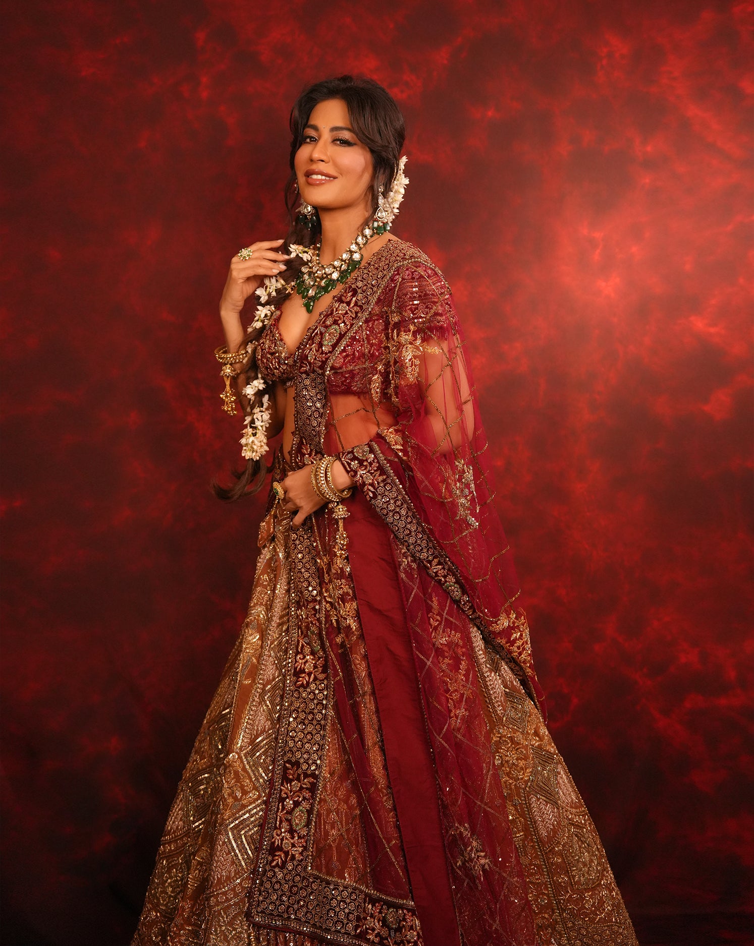 Style Tip: Complete the look with a softly contoured glow, a deep nude lip, and layered heritage jewelry, let the gajra and maroon tones steal the spotlight with timeless allure.